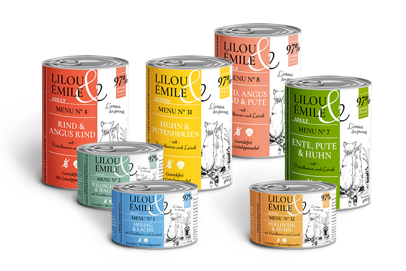 Lilou & Émile ist ein hochwertiges Futtermittel für Katzen und überzeugt mit erlesenen Zutaten. Tauchen Sie mit unseren köstlichen Menus ein in die Haute Cuisine Frankreichs und schwelgen Sie in den Genüssen. Feines Fleisch wird mit ausgewählten Ingredienzen wie Preiselbeeren, dem Extrakt der Grünlippmuschel und Leinsaat zubereitet:
